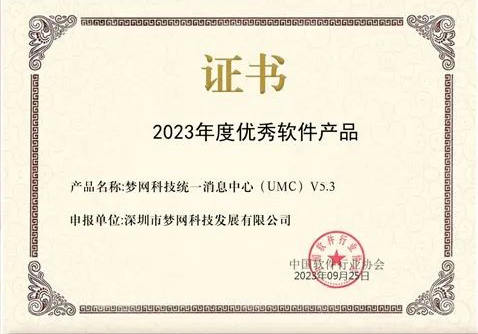 凯发k8官网科技“统一消息中心 (UMC) V5.3”获评中国软件行业协会“2023年度优秀软件产品”;
